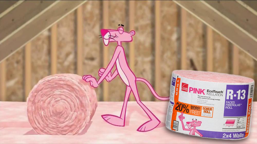 We played almost regularly in the unfinished space, which ran the length of our house–mostly pretending Little House on the Prairie with thick skirts covered in as many aprons as possible. The back area floor and walls converged in an A-frame and were uncovered, fluffy-looking Pink Panther fiberglass insulation bare between the studs. Adults warned us not to not touch because of the bits of glass that made up the material. Of course we’d touch it, on purpose or by accident or both, washing our hands later in a panic, imagining it in our skin, tiny glass slivers doing something painful and hurtful or at least insidious.